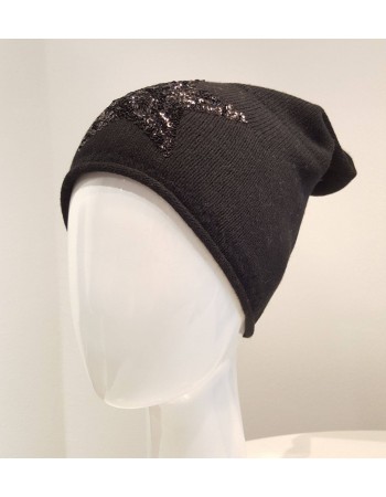 Beanie Mütze Star - schwarz mit schwarzen Pailetten