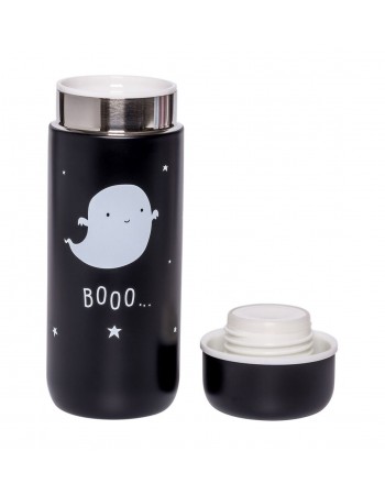 Unsere coole, doppelwandige Trinkflasche mit Gespensteraufdruck darf in der Tasche ihres Kindes nicht fehlen. Die Trinkflasche ist aus Edelstahl hergestellt, verschließbar mit einem praktischen Drehverschluss und hat das perfekte Format für die Schule oder einfach für unterwegs. Die Getränke ihres Kindes bleiben 12 Stunden kalt oder bis zu 8 Stunden warm. Sind Sie oder ihr Kind ein großer Fan unseres putzigen Gespenstes? Dann kombinieren Sie die Edelstahl-Trinkflasche mit unserer Lunchbox, im selben Design. Damit stiehlt ihr Kind, in der Schule, garantiert allen die Show! • Maße: 6,5 x 6,5 x 16,7 cm • Inhalt: 200 ml/ 7fl oz • Material: Edelstahl, PP und Silikon • 12 Stunden kalt • 8 Stunden warm • Nicht Spülmaschinenfest