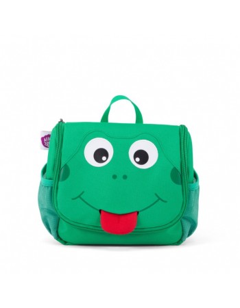 Mit der entzückenden Kulturtasche " Finn Frosch ", von Affenzahn, wird sogar das langweilige und teilweise sehr unbeliebte Zähneputzen zum riesen Spaß! Ob Zuhause, bei Freunden oder im Urlaub, in dieser süßen Tasche lassen sich alle wichtigen Badeutensilien verstauen. Neben einem praktischen Zahnputzhalter hat unser lustiger Finn noch einen integrierten Klett-Spiegel, und jede Menge Fächer. Und damit es nicht zu Verwechslungen kommt, haben alle Affenzahn Produkte eine herausziehbare Zunge, in der das Namensschild integriert ist. •Hauptfach mit Reißverschluss •je ein je 1 Steckfach an der Aussenseite •Ziehzunge mit Namensschild •Herausnehmbarer Spiegel mit Klettverschluss •Zahnbürstenhalterung •Größe: 17 x 7 x 20 cm •Innenraum: 1 Reißverschlussnetzfach, 4 Steckfächer