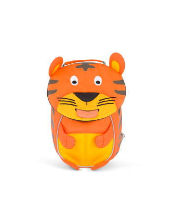 Mit dem kleinen Rucksack (17x25x11) in coolen Tiger-Design, von Affenzahn, haben Kinder von 1 – 3 Jahren einen tollen Begleiter an ihrer Seite. Dank seines scharfen Blicks sieht Timmy, alles und jeden und kann deshalb gut auf den Inhalt des 17 x 25 x 11 cm großen Rucksacks aufpassen. Sein Fach, mit einem Fassungsvermögen von 4 l, wird über eine Deckelklappe mit Reißverschluss geöffnet. Der süße Tiger wird über gepolsterte Schultergurte getragen, die durch ihren Veloursüberzug noch bequemer sind und außerdem individuell auf die Größe des Kindes angepasst werden können. Ein höhenverstellbarer Brustgurt fixiert den Rucksack zusätzlich. An dem Henkel kann der Kinderrucksack an der Garderobe aufgehängt werden. Der Tiger ist aus Polyester hergestellt und mit handgestickten Details sowie Reflektoren versehen. Der Affenzahn Rucksack (17x25x11) hat eine herausziehbare Zunge, in dem das Namensschild integriert ist.
