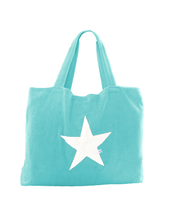 Unser Klassiker: Die Beachtasche im XL-Format aus wunderbar weicher Frottee-Baumwolle bietet jede Menge Stauraum für alle Strandutensilien. Auf der Außenseite befindet sich eine Stern-Applikation in weiß. Im Innenteil sind drei Schlaufen angebracht, die mit 2 Karabinern versehen sind und mit denen die Strandtasche ganz einfach verschlossen werden kann. Farbe: Azur Qualität: 100% vorgewaschene Frottee-Baumwolle Gewicht: 500 g/m² Höhe: 50 cm, Breite: 64 cm, Höhe: 70 cm mit Träger Waschbar bei 30°